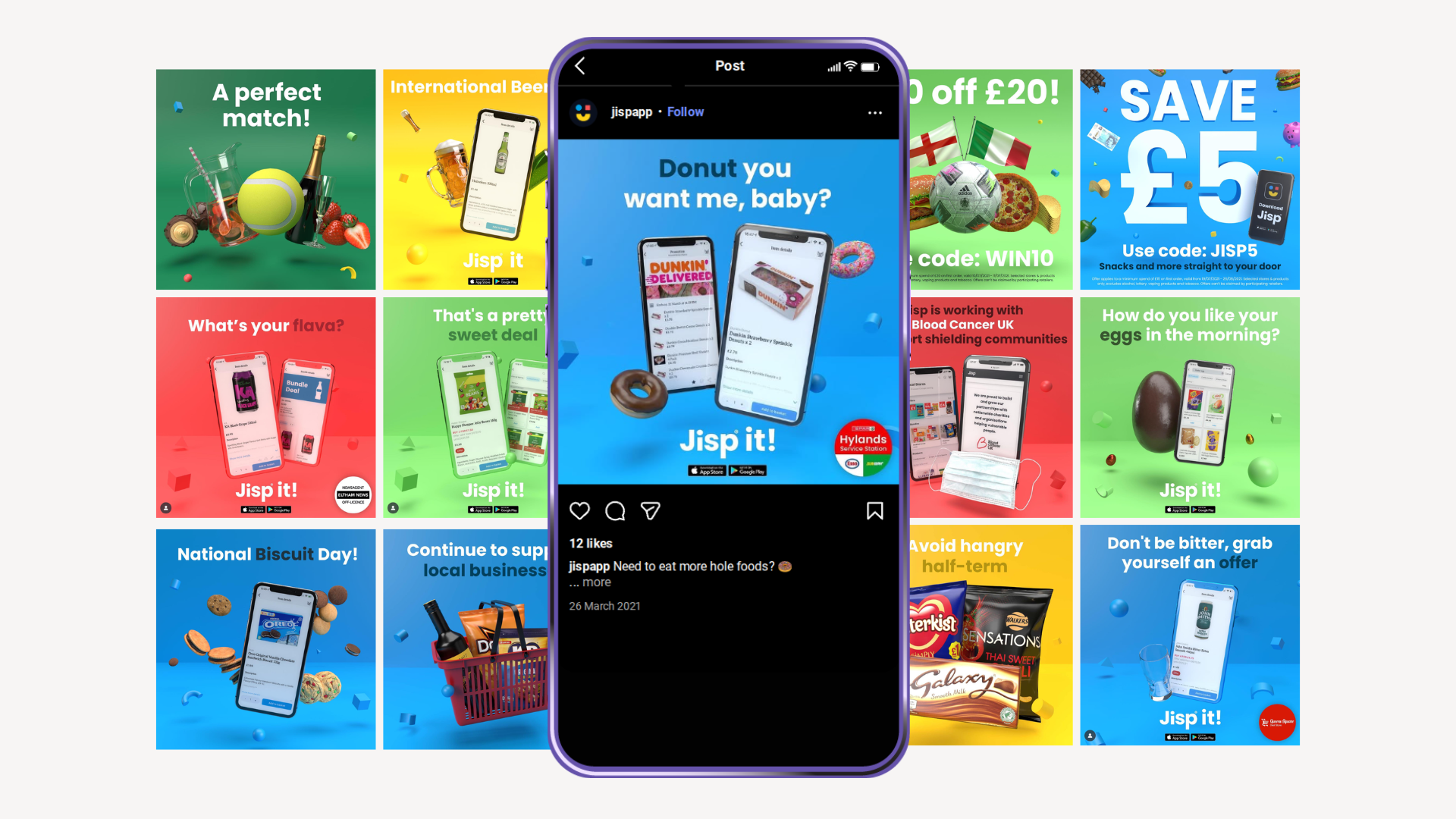 A new visual language, featuring a 3D evolution of Jisp’s existing brand identity, applied across a suite of social assets and a redesigned homepage.