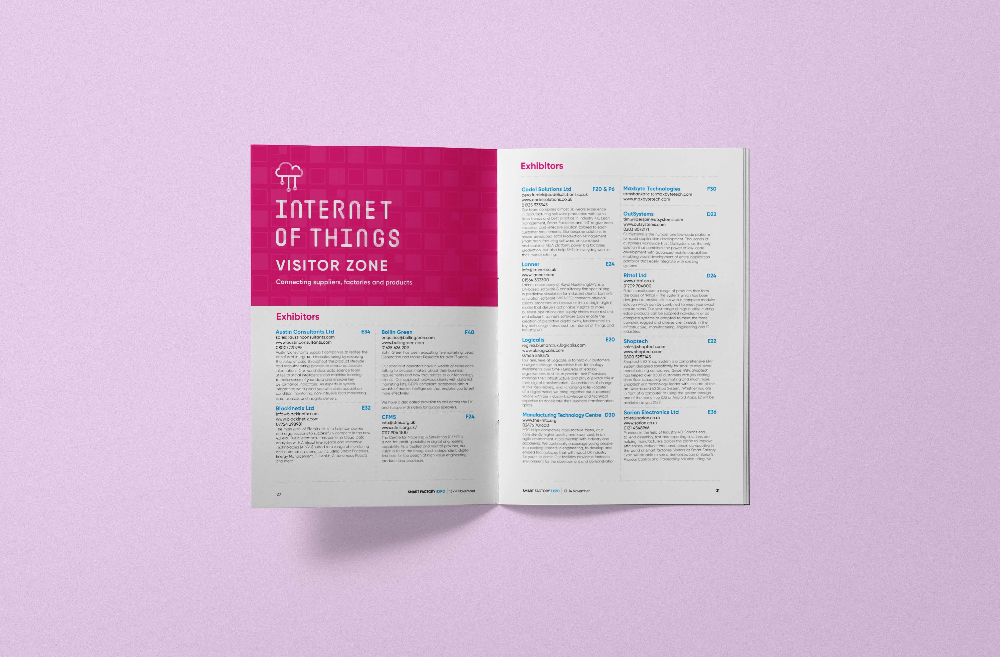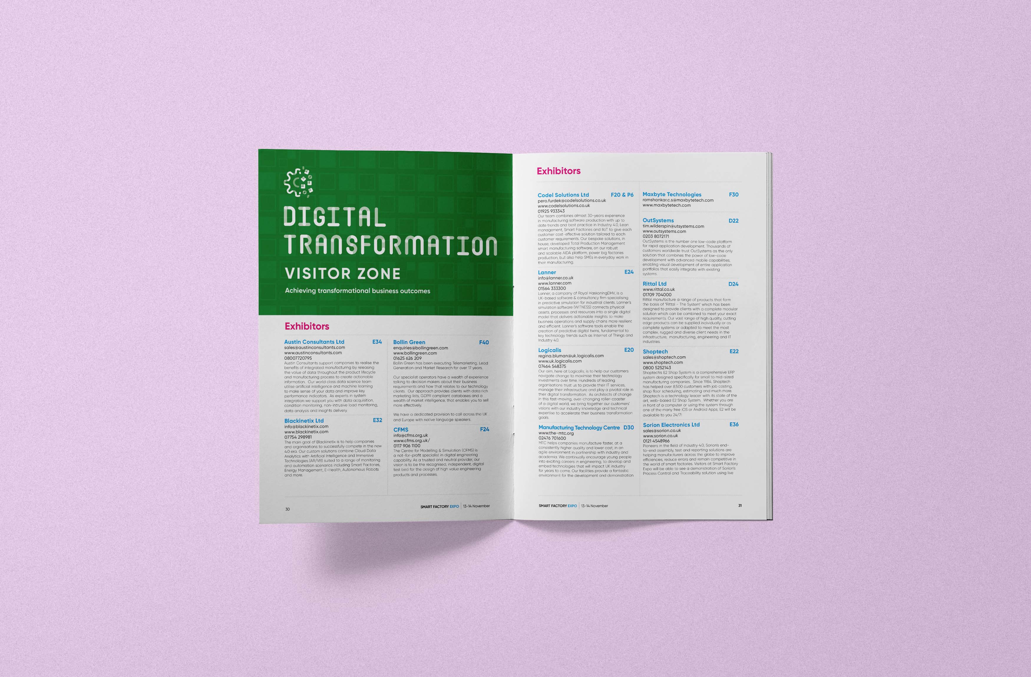 A typographic system based on a hinge/pivot system was created to reinforce the shows manufacturing and engineering spirit. The system later developed in to a series of icons which were rolled out over hanging banners, voiles, topic bins, lecterns and show guide.